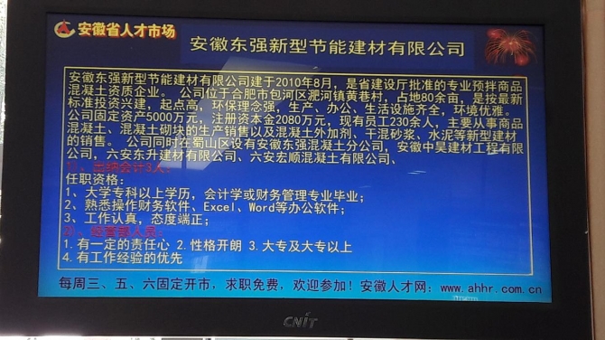 上圖為我公司在安徽省人才市場招聘簡介
