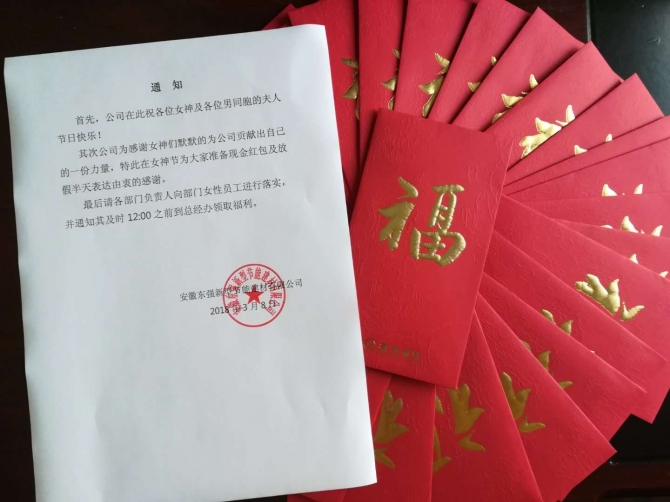 公司為感謝女神們默默的為公司貢獻出自己的一份力量,特此在女神節(jié)為大家準備現金紅包及放假半天表達由衷的感謝。